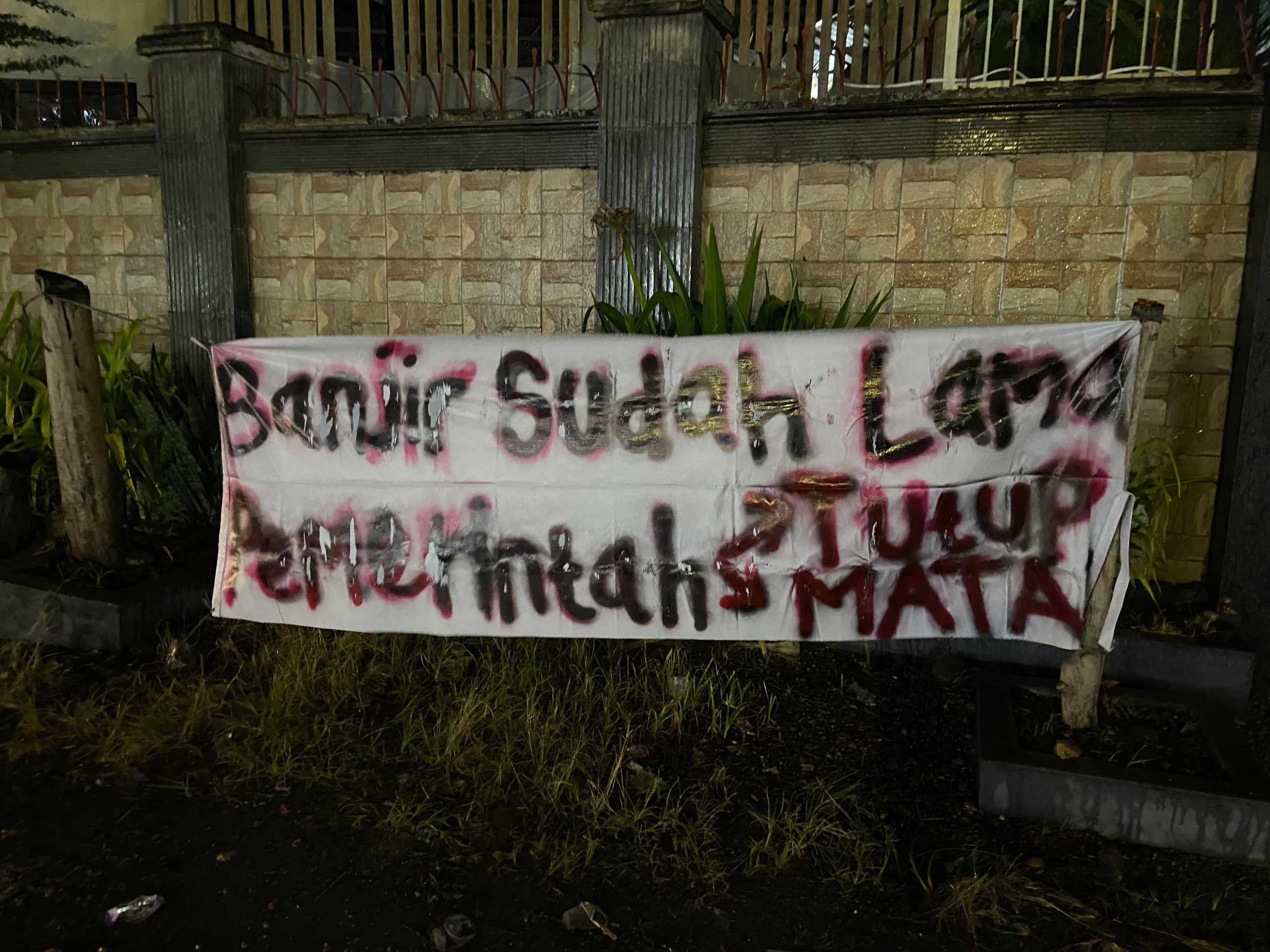 Sebagai bentuk kepedulian dan aksi moral, mahasiswa yang tergabung dalam BEM KBM UNIB memasang spanduk di lokasi banjir dengan pesan bernada kritik konstruktif terhadap lambannya respons pemerintah. Spanduk tersebut bertuliskan: